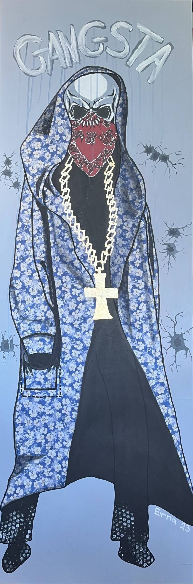 Dette unikke kunstværk eksisterer kun i ét eksemplar, hvilket gør det til en sjælden mulighed for at eje et originalt og eksklusivt stykke kunst. Det er det perfekte valg, hvis du vil tilføje karakter og personlighed til ethvert rum.